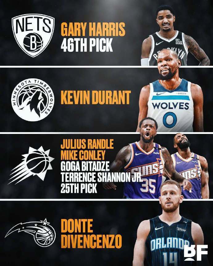 美媒构想四方交易:杜兰特去森林狼 兰德尔赴太阳